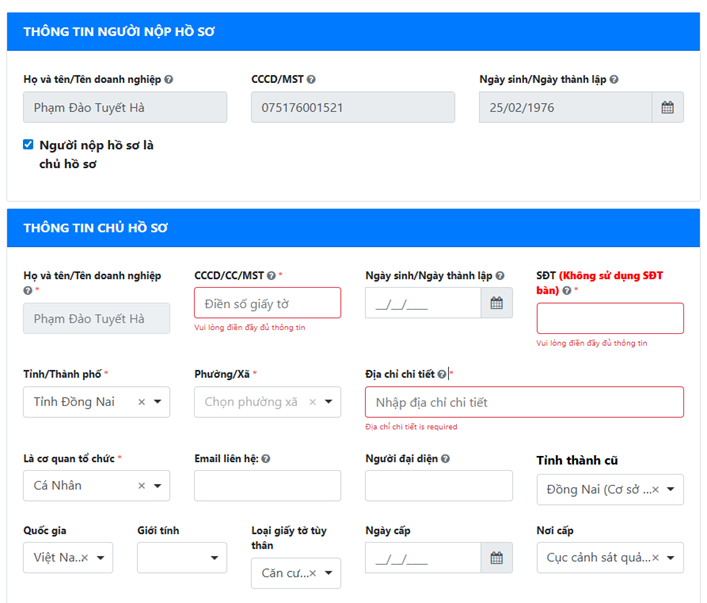 | Bước 10: Điền đầy đủ thông tin cá nhân (Những chỗ có dấu sao là bắt buộc phải có thông tin) |