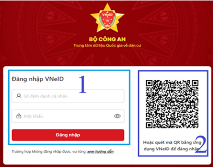 | Bước 4: Đăng nhập tài khoản định danh điện tử của cá nhân – Tài khoản VNeID Có 2 cách đăng nhập: